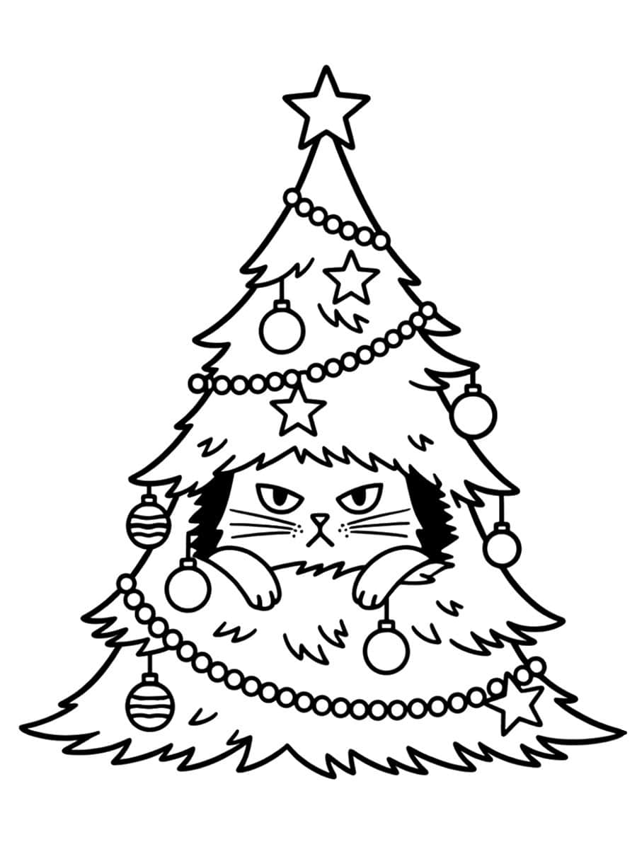 Ce coloriage sapin et chat à imprimer propose une scène de Noël pleine d’humour, avec un chat malicieusement caché au cœur d’un sapin décoré de boules et de guirlandes. Le dessin, à la fois simple et détaillé, permet aux enfants de s’amuser avec différentes couleurs tout en restant facile à colorier. Idéal pour une activité créative à la maison ou à l’école, ce coloriage stimule l’imagination et la concentration.